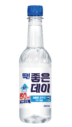 좋은데이450㎖ 페트제품은 환경부 기준인 0.5%보다 낮은 0.3%의 접착면에, 비중 1미만 포장재를 사용해 페트 빈용기를 100% 재활용할 수 있는 '재활용 최우수 등급' 제품으로 선보였다.